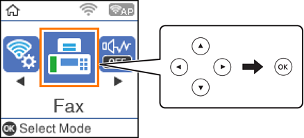 دکمه تأیید را فشار دهید و سپس گزینه تنظیمات اسکن یا تنظیمات ارسال فکس را انتخاب کنید و سپس تنظیماتی نظیر وضوح و روش ارسال را در صورت لزوم انجام دهید.