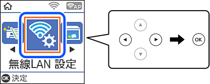 プリンターのホーム画面で[無線LAN 設定]を選択します。