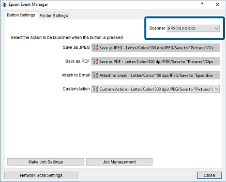 Приложение за конфигуриране на операции за сканиране от контролния панел (Epson Event Manager)