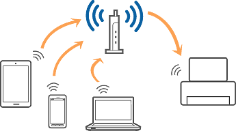 Συνδέστε τον εκτυπωτή και τον υπολογιστή ή την έξυπνη συσκευή στο σημείο πρόσβασης. Αυτή είναι η τυπική μέθοδος σύνδεσης για δίκτυο οικίας ή γραφείου, όπου οι υπολογιστές συνδέονται μέσω Wi-Fi από το σημείο πρόσβασης.