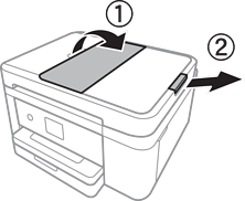 Ανοίξτε το στήριγμα εγγράφων ADF και προεκτείνετε την επέκταση της θήκης εξόδου ADF.
