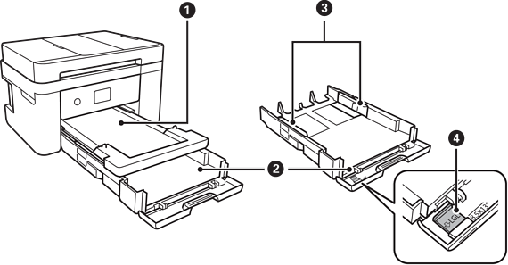 用紙をまっすぐ送るためのガイドです。用紙の側面に合わせてください。 |
