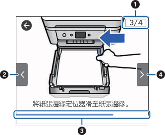 指示目前步驟的進度。進度列到達結尾時,動畫會重複。