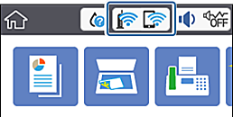 Bạn có thể kiểm tra tình trạng kết nối mạng và cường độ sóng vô tuyến bằng cách sử dụng biểu tượng mạng trên màn hình chính của máy in.