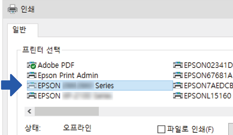 프린터 이름 또는 "네트워크"는 운영 체제 버전에 따라 XXXX에 표시됩니다.