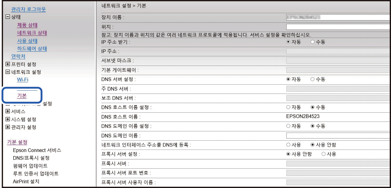 Web Config의 표시 내용 및 항목은 모델에 따라 다릅니다.