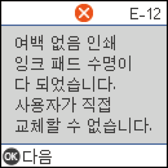 다음 화면이 표시되면 부품을 사용자가 교체할 수 없습니다. 고객 지원 센터에 문의하십시오.