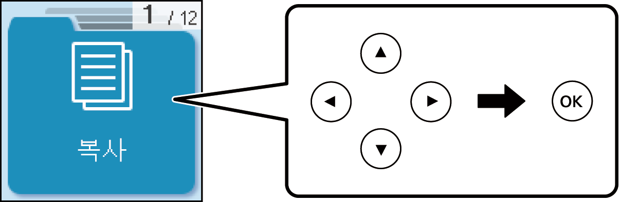 항목을 선택하려면 버튼을 사용한 다음 OK 버튼을 누릅니다.