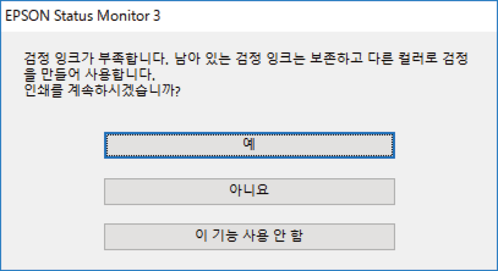 남아있는 검정 잉크를 사용하려면 선택합니다. 다음에 비슷한 작업을 인쇄할 때 이 창이 표시됩니다. |