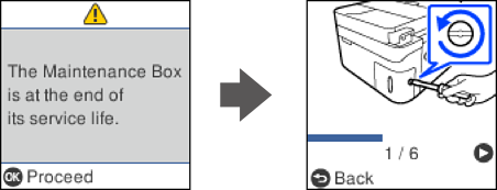 När följande skärm visas kan inte delen bytas av användare. Kontakta Epson support.