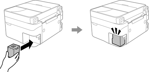 Sätt i den nya underhållsenheten helt och hållet i den nya skrivaren. Se till att du sätter in boxen i rätt riktning.