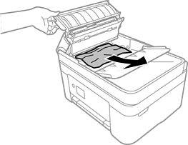 Ta bort papperet som har fastnat.