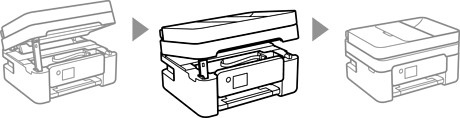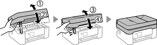 Skannerenheten kan inte öppnas från positionen som visas nedan. Stäng den helt innan du öppnar den.