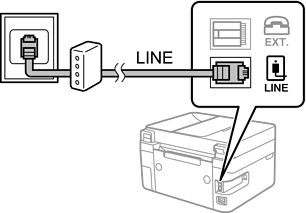 Anslut en telefonkabel från DSL-modemet eller ISDN-terminalkortet till LINE-porten på baksidan av skrivaren. Ytterligare information finns i dokumentationen som medföljde modemet eller adaptern.