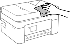 Sekiranya komponen dan bekasnya kotor atau berdebu, matikan pencetak dan bersihkan menggunakan kain lembut, bersih dan lembap. Sekiranya anda tidak dapat menghilangkan kotoran, cuba letakkan sedikit bahan pencuci pada kain yang lembap itu.