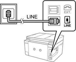 Свържете телефонен кабел от телефонната розетка или порта на телефонната централа към LINE порт на гърба на принтера.