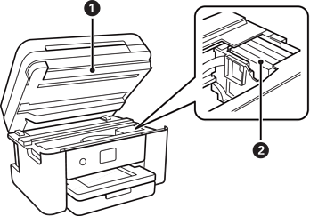 Сканира поставените документи. Отваря се при подменяне на касетите с мастило или премахване на заседнала в принтера хартия. Този модул обикновено трябва да се държи затворен. |