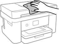 Ако компонентите и корпусът са замърсени или запрашени, изключете принтера и ги почистете, като използвате мека и чиста кърпа, напоена с вода. Ако не можете да отстраните замърсяването, добавете малко количество лек почистващ препарат към напоената кърпа.
