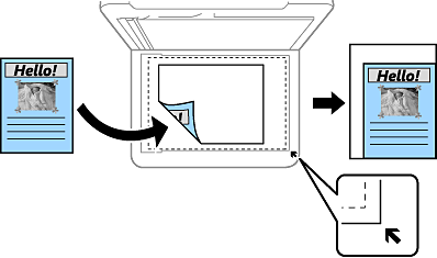 Улавя зоната за сканиране и автоматично увеличава или намалява оригинала, за да се вмести в избрания размер на листа хартия. Когато около оригинала има бели полета, белите полета от ъгловата маркировка от стъклото на скенера се улавят като зона на сканиране, но полетата в противоположната страна може да бъдат изрязани.