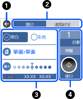 顯示畫面上的鍵盤允許您輸入複印數量。
