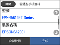 在 Epson Smart Panel 上,智慧型裝置會在印表機啟動時自動連接。