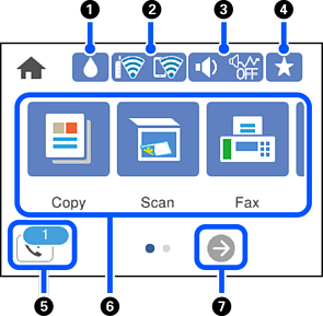 Besleme Durumu ekranını görüntüler. Yaklaşık mürekkep seviyelerini ve bakım kutusunun yaklaşık kullanım ömrünü kontrol edebilirsiniz. Mürekkep kartuşlarını değiştirebilir veya Tedarik Durum Kğdı öğesini yazdırabilirsiniz. |
