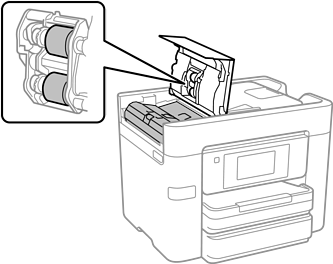Használjon puha és nedves ruhát a görgők és az automatikus dokumentumadagoló belsejének megtisztításához.