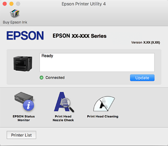 Elindíthat egy karbantartási funkciót, mint pl. a fúvókák ellenőrzését vagy a nyomtatófej tisztítását, továbbá az EPSON Status Monitor bekapcsolása után ellenőrizheti a nyomtató állapotát és a hibaüzeneteket.