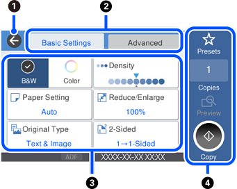 Megjeleníti a képernyőn megjelenő billentyűzetet, amely lehetővé teszi a másolatok számának megadását. |