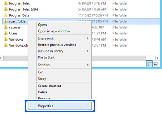 Šajā paskaidrojumā sniegts piemērs, kā izveidot koplietotu mapi koplietotā datora diska saknes direktorijā, piemēram, failu serverī, ievērojot tālāk norādīto nosacījumu.
