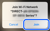 Viedierīcēm, kas iepriekš ir bijušas savienotas ar printeri, viedierīces Wi-Fi ekrānā atlasiet tīkla nosaukumu (SSID), lai izveidotu savienojumu atkārtoti.
