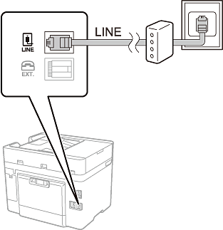 Savienojiet tālruņa kabeli no DSL modema vai ISDN termināla adaptera ar portu LINE printera aizmugurē. Papildinformāciju skatiet modema vai adaptera komplektā iekļautajā dokumentācijā.