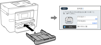 如果您在插入进纸器时显示的屏幕上注册了打印纸尺寸和类型,则当注册信息和打印设置发生变化时,本产品会通知您。这样可避免由于设置与打印纸类型不匹配而使用不正确的打印纸尺寸或按错误的颜色进行打印,从而防止浪费打印纸和墨水。