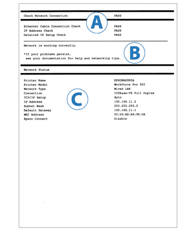 | 3 | Confirm IP address, subnet mask, and default gateway setup.(请确认 IP 地址、子网掩码和默认网关设置。) Connection using the EpsonNet Setup is available.(可通过 EpsonNet Setup 进行连接。) Contact your network administrator for assistance.(请联系您的网络管理员以获得帮助。) |