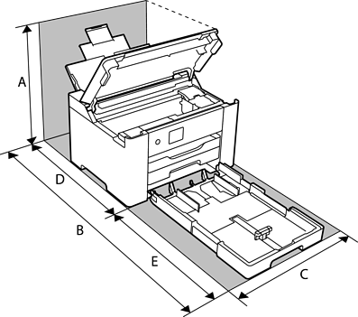 Sørg for, at der er nok plads til at installere og betjene printeren korrekt.