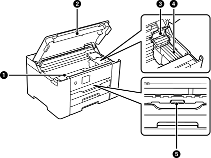 Open when removing jammed paper inside the printer. Keep this cover closed while the printer is not in use to prevent foreign substances from entering the printer. |