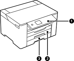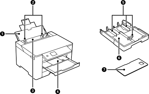 Holds the ejected paper. When you start printing, this tray is ejected to fit the paper size automatically. To store the tray, push it manually or select |