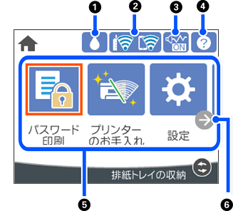 ヘルプ画面を表示します。困ったときの対処方法やプリンターの基本操作手順が確認できます。 |