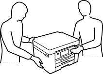 Når du bærer skriveren, må du løfte den i stabil posisjon. Hvis du løfter skriveren med en ustabil posisjon, kan det føre til ulykker.