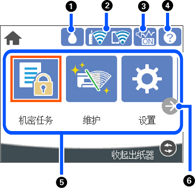 表示已为本产品设置了安静模式。启用此功能时,本产品操作期间产生的噪声较小,但打印速度可能会降低。但是,根据所选打印纸类型和打印质量,噪音也可能不会减小。选择此项可更改设置。也可以从设置菜单进行此设置。 设置 > 常规设置 > 打印机设置 > 安静模式 |
