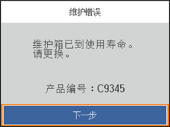 显示以下屏幕时,用户不能自行更换。请联系爱普生认证服务机构。