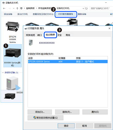 单击驱动程序标签。如果本产品名称显示在列表中,则表明您的计算机上已安装了正版爱普生打印机驱动程序。