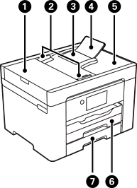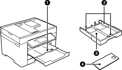 Retiene el papel expulsado. Al empezar a imprimir, esta bandeja se expulsa para ajustar automáticamente al tamaño del papel. Para guardar la bandeja, empújela manualmente o seleccione |