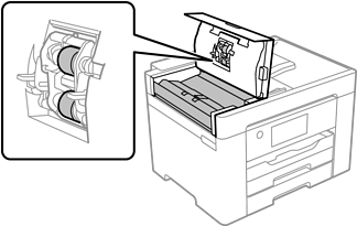 از پارچه ای نرم و مرطوب برای تمیز کردن غلتک و قسمت داخلی ADF استفاده کنید.