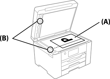 اگر هنگام کپی کردن از ADF خطوط سیاه رنگ ایجاد می شوند، ممکن است قسمت (B) نشان داده شده در زیر کثیف باشد.