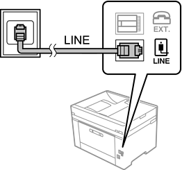 Під’єднайте телефонний кабель від телефонної настінної розетки або порту ВАТС до порту LINE, розташованого на задній стороні принтера.