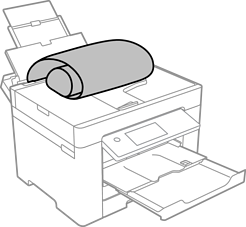 לא ניתן להחזיק נייר ארוך במגש הפלט. הכן קופסה על מנת לוודא שלא ייפול נייר לריצפה.