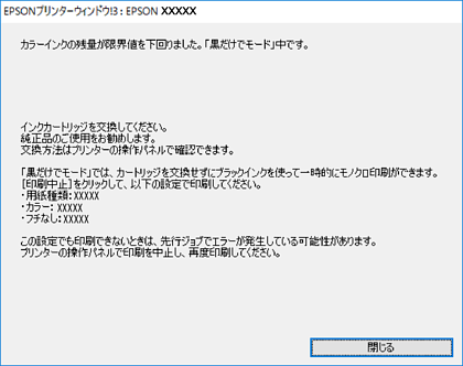 • 以下の画面が表示されたら[黒だけで印刷]を選択します。