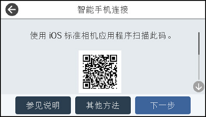 在 iPhone、iPad 或 iPod touch 上,启动标准“相机”应用程序,然后在“照片”模式下扫描本产品操作面板上显示的二维码。
