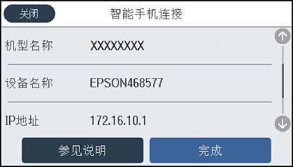 在 Epson Smart Panel 上,智能设备会在应用程序启动时自动连接到打印机。